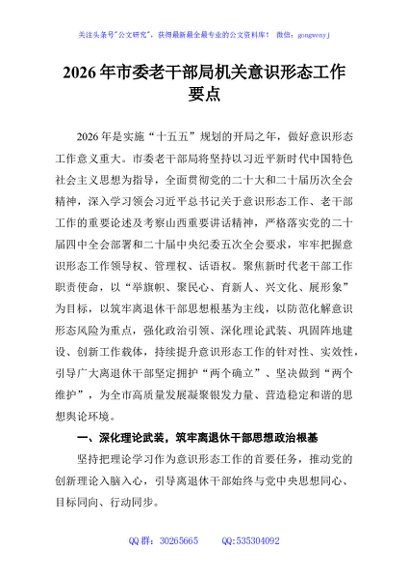 / 2026年市委老干部局机关意识形态工作要点