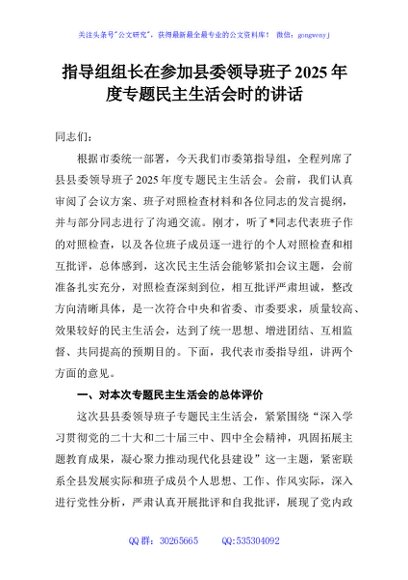 / 指导组组长在参加县委领导班子2025年度专题民主生活会时的讲话