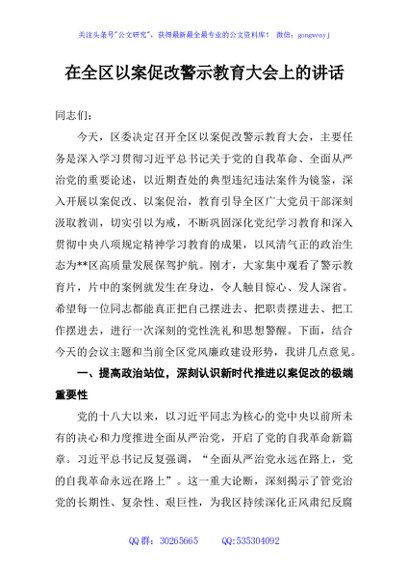 / 在全区以案促改警示教育大会上的讲话