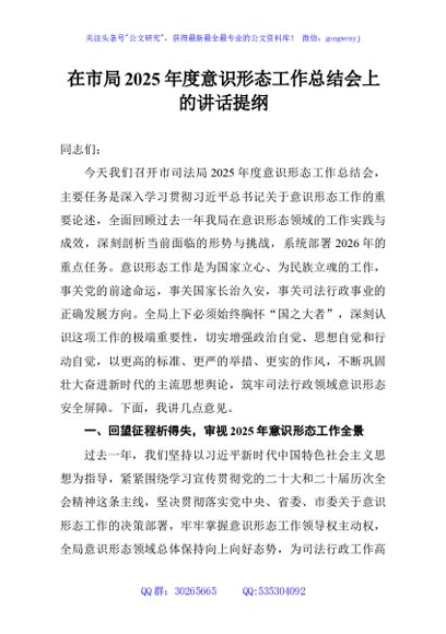 / 在市局2025年度意识形态工作总结会上的讲话提纲