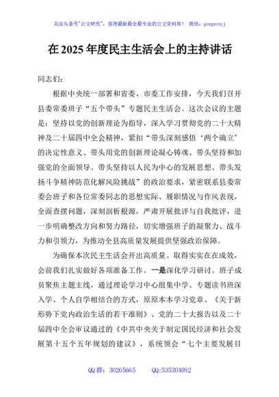 / 在2025年度民主生活会上的主持讲话