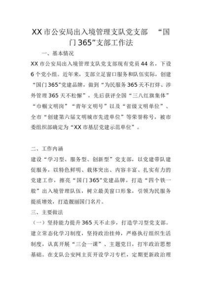 / 市公安局出入境管理支队党支部 “国门365”支部工作法(党建品牌)
