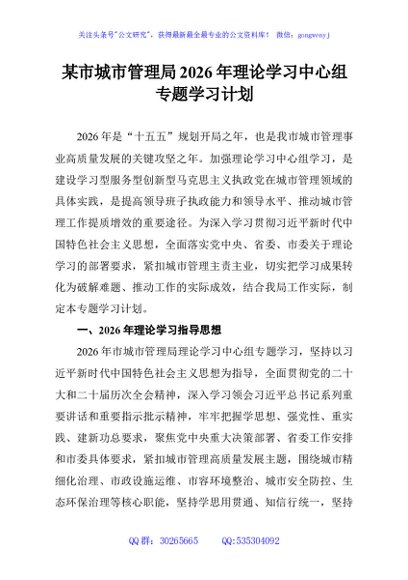 / 某市城市管理局2026年理论学习中心组专题学习计划