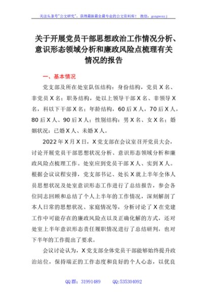/ 关于开展党员干部思想政治工作情况分析、意识形态领域分析和廉政风险点梳理有关情况的报告
