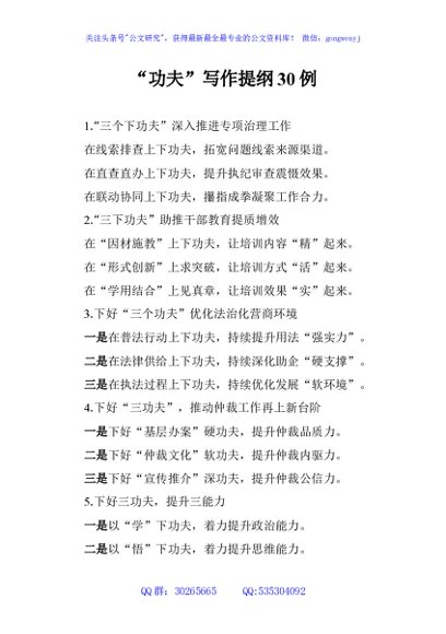 / “功夫”写作提纲30例