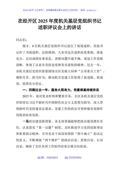 / 在经开区2025年度机关基层党组织书记述职评议会上的讲话