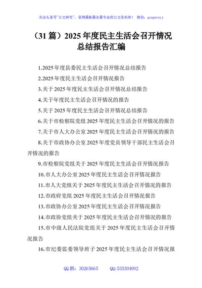 / (31篇)2025年度民主生活会召开情况总结报告汇编