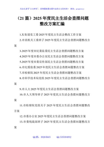 / (21篇)2025年度民主生活会查摆问题整改方案汇编