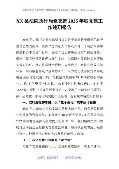 / XX县法院执行局党支部2025年度党建工作述职报告