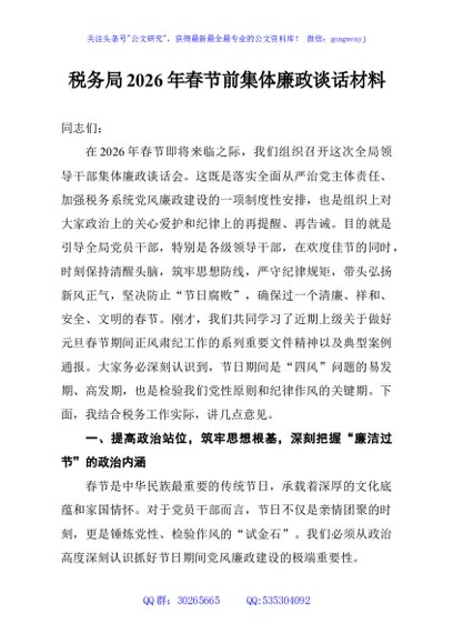 / 税务局2026年春节前集体廉政谈话材料