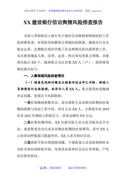 / XX建设银行信访舆情风险排查报告