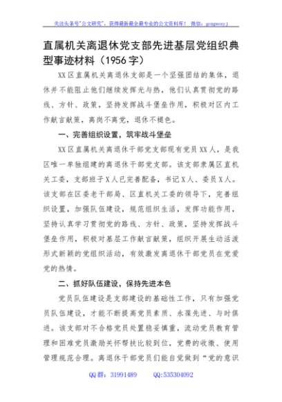/ 直属机关离退休党支部先进基层党组织典型事迹材料