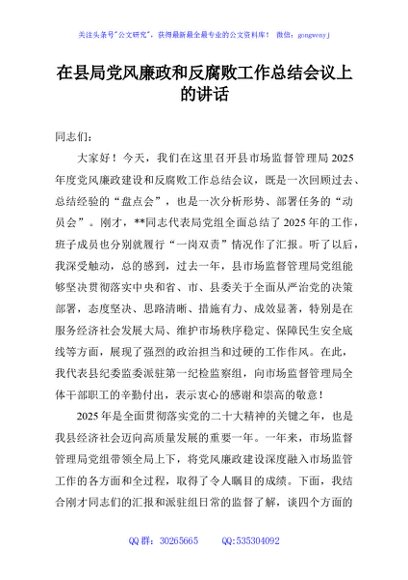 / 在县局党风廉政和反腐败工作总结会议上的讲话