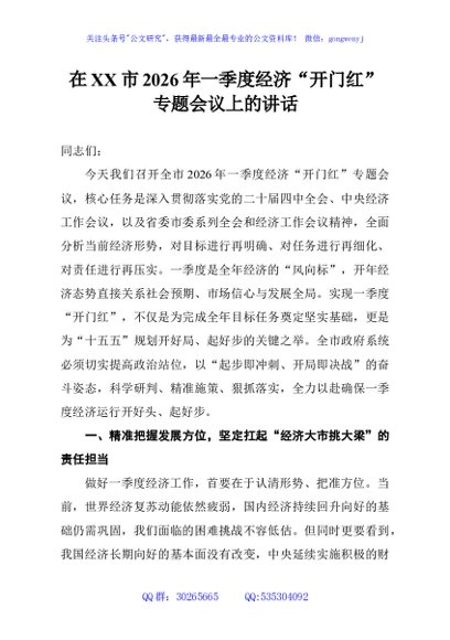 / 在XX市2026年一季度经济“开门红”专题会议上的讲话