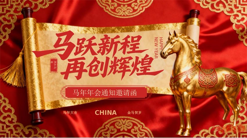 / 喜庆风2026年马年年会邀请函PPT模板