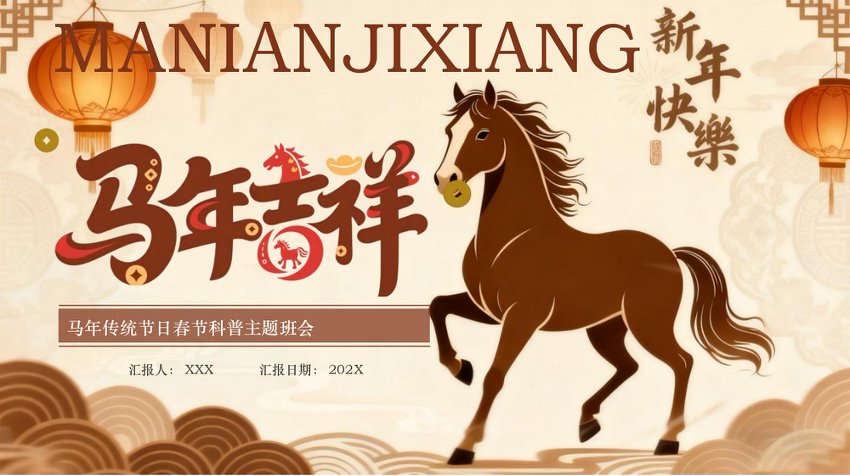 / 棕色国潮风马年传统节日春节科普主题班会PPT模板