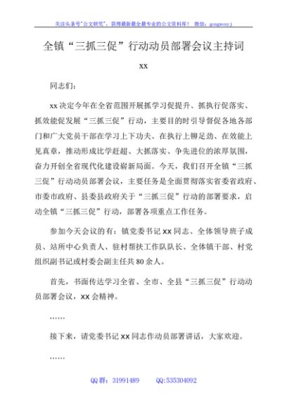 / 三抓三促会议主持词
