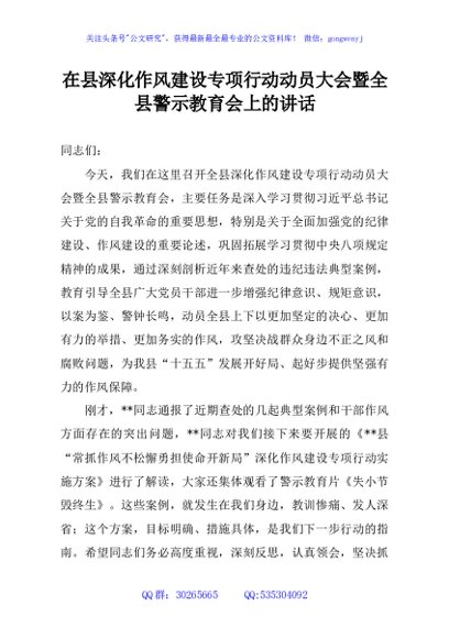 / 在县深化作风建设专项行动动员大会暨全县警示教育会上的讲话