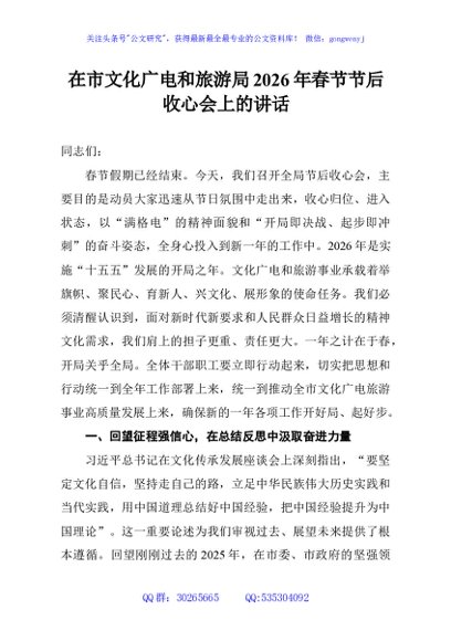 / 在市文化广电和旅游局2026年春节节后收心会上的讲话