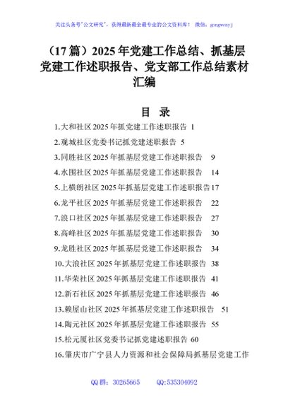 / (17篇)2025年党建工作总结、抓基层党建工作述职报告、党支部工作总结素材汇编
