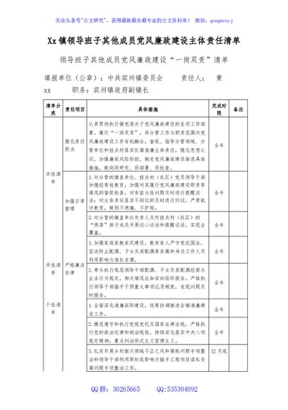 / Xx镇领导班子其他成员党风廉政建设主体责任清单