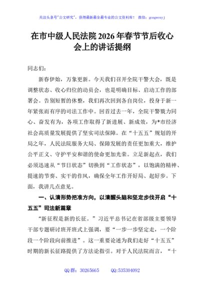 / 在市中级人民法院2026年春节节后收心会上的讲话提纲
