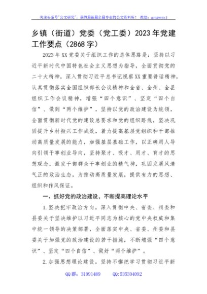 / 乡镇党委2023年党建工作要点