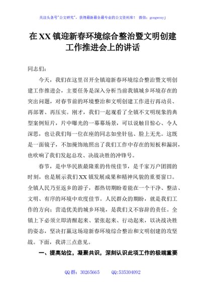 / 在XX镇迎新春环境综合整治暨文明创建工作推进会上的讲话