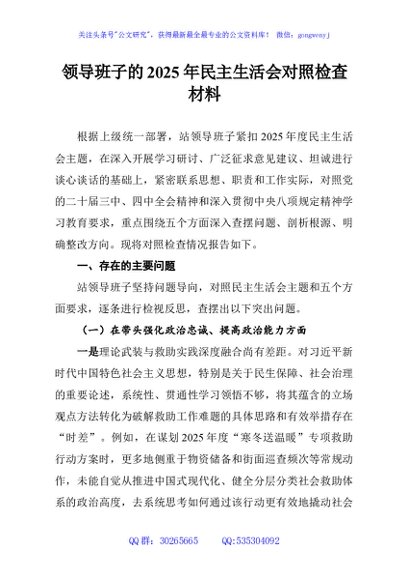 / 领导班子的2025年民主生活会对照检查材料