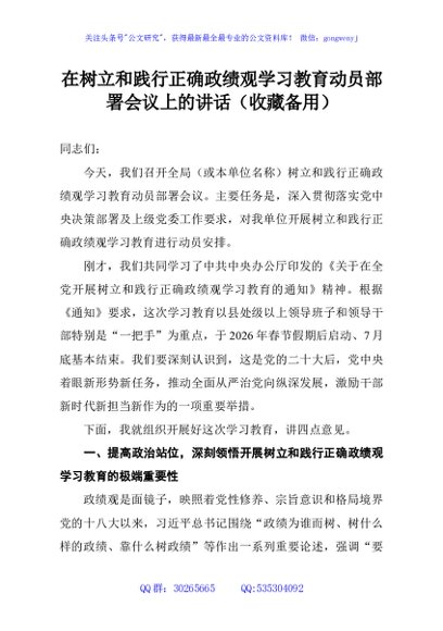 / 在树立和践行正确政绩观学习教育动员部署会议上的讲话(收藏备用)