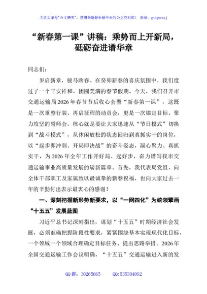 / “新春第一课”讲稿:乘势而上开新局,砥砺奋进谱华章