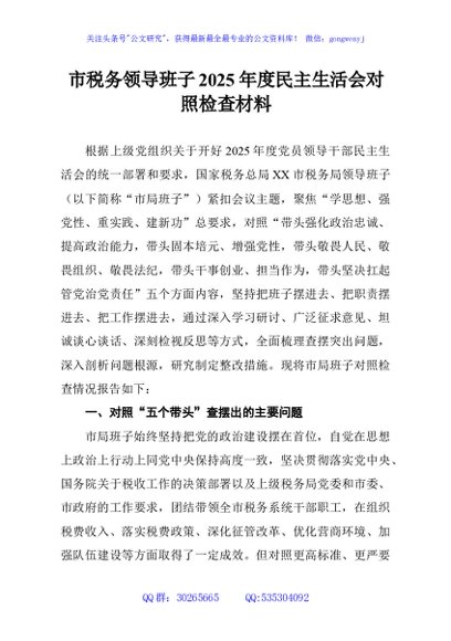 / 市税务领导班子2025年度民主生活会对照检查材料