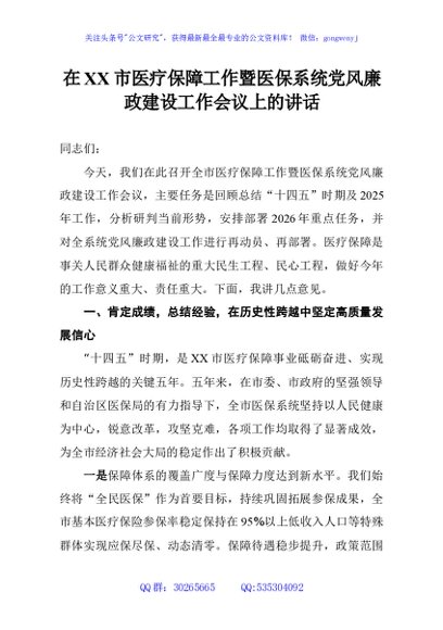 / 在XX市医疗保障工作暨医保系统党风廉政建设工作会议上的讲话