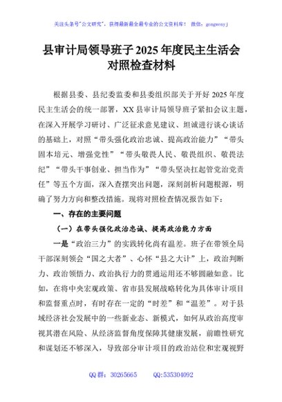 / 县审计局领导班子2025年度民主生活会对照检查材料