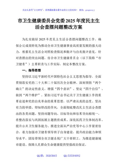 / 市卫生健康委员会党委2025年度民主生活会查摆问题整改方案