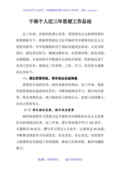 干部个人近三年思想工作总结