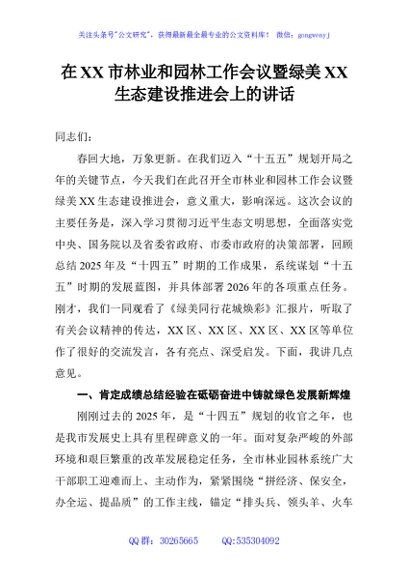 / 在XX市林业和园林工作会议暨绿美XX生态建设推进会上的讲话