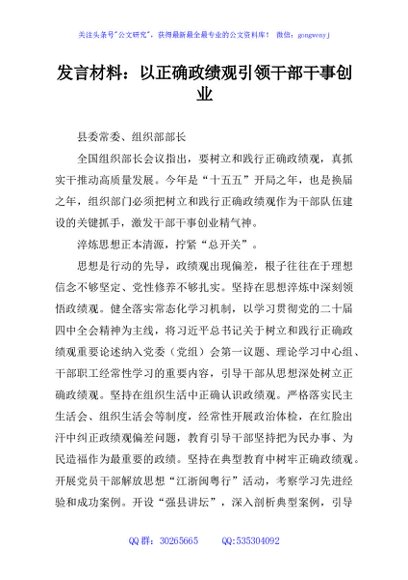 发言材料:以正确政绩观引领干部干事创业