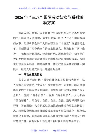 / 2026年“三八”国际劳动妇女节系列活动方案
