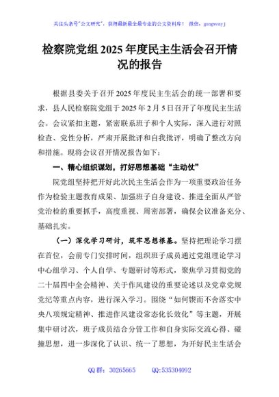 / 检察院党组2025年度民主生活会召开情况的报告
