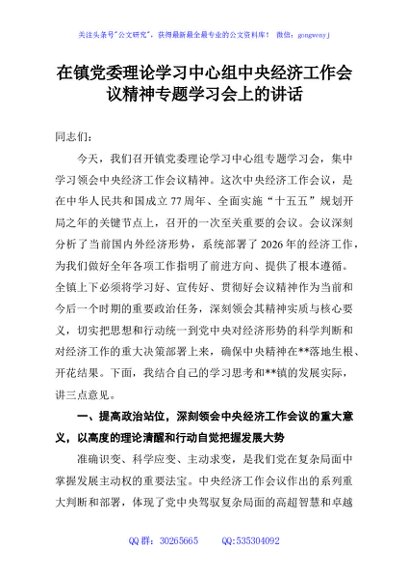 / 在镇党委理论学习中心组中央经济工作会议精神专题学习会上的讲话