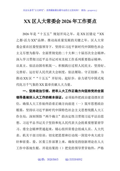 / XX区人大常委会2026年工作要点