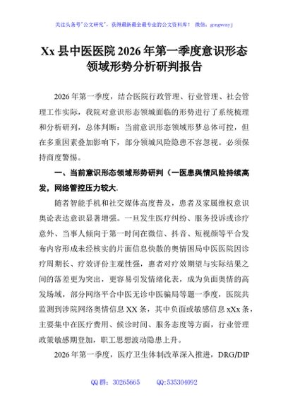 / Xx县中医医院2026年第一季度意识形态领域形势分析研判报告