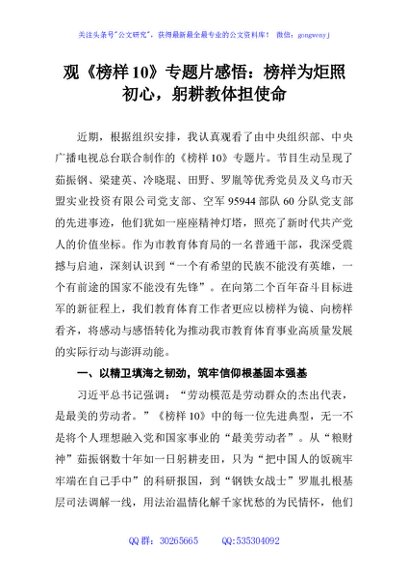 / 观《榜样10》专题片感悟:榜样为炬照初心,躬耕教体担使命
