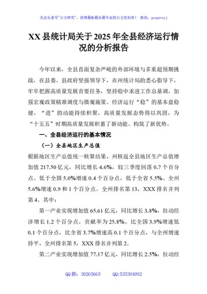 / XX县统计局关于2025年全县经济运行情况的分析报告