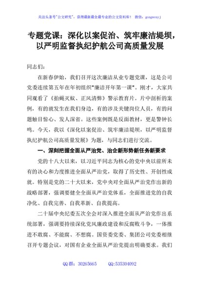 专题党课:深化以案促治、筑牢廉洁堤坝,以严明监督执纪护航公司高质量发展