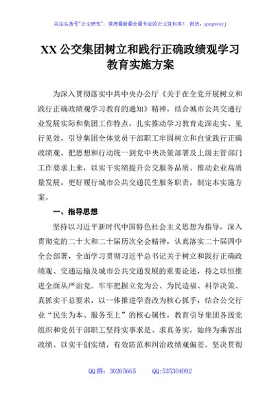/ XX公交集团树立和践行正确政绩观学习教育实施方案