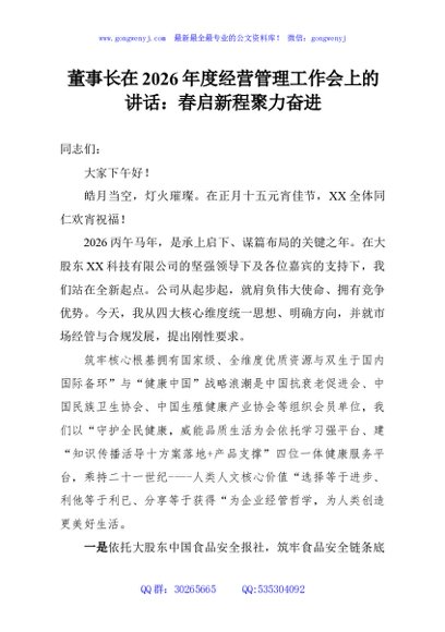 / 董事长在2026年度经营管理工作会上的讲话:春启新程聚力奋进