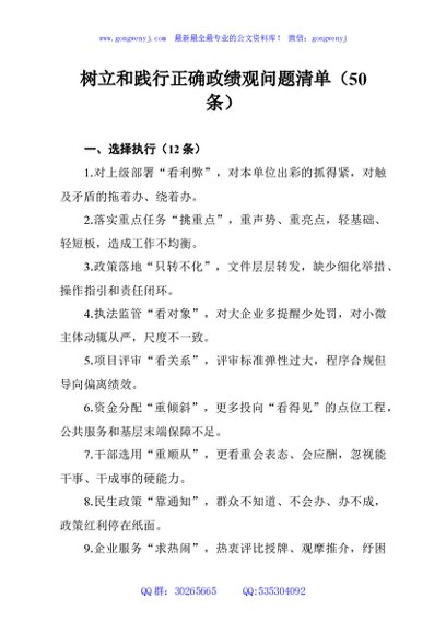 / 树立和践行正确政绩观问题清单(50条)