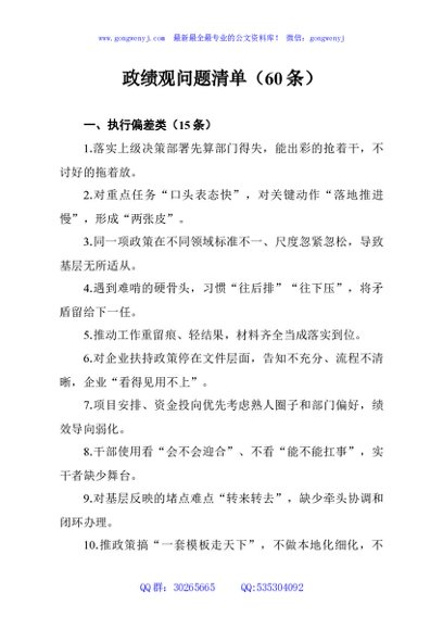 / 政绩观问题清单(60条)